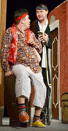 Sluha dvou pánů je zralým plodem commedie dell'arte – má tradiční postavy a situace. Odehrává se v úzkém rodinném rámci, kde jsou hlavní událostí zásnuby, které komplikuje sluha Truffaldino, mazaný a přihlouplý zároveň. Rozehrává komedii záměn a nedorozumění, poháněn svým věčným hladem, skrze nečekané peripetie až ke šťastnému konci. Obklopují ho tradiční postavy – masky commedie dell'arte – ustaraný tatík Pantalone, přemoudřelý doktor a jejich zamilované děti, dobrodružný pár milenců, hostinský Brighella nebo služka Smeraldina.