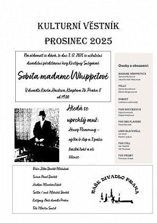Parodická „detektivka“ nabitá situačním a slovním humorem, který zaručuje nezapomenutelný zážitek. Hraje Naše divadlo Praha. Pronájem otevřený veřejnosti.