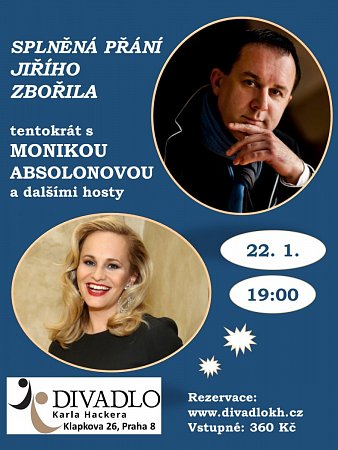 Hlavním hostem Jiřího Zbořila bude tentokrát zpěvačka, herečka a moderátorka MONIKA ABSOLONOVÁ.