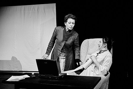 Nová hra Jany Pacnerové byla uvedena Divadlem BLAMA jako premiéra v pražském Divadle Kampa. Uvádí příběh osamělé a stárnoucí autorky románů, tíhnoucí k alkoholu, která je sice nejprve přepadena mladým rafinovaným darebákem z kategorie dnešních „šmejdů“, ale dostane se jí výrazné pomoci od nečekané návštěvnice, která celý příběh pěkně proplete až k nečekanému závěru.