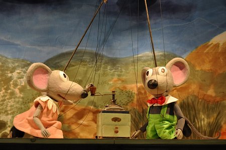 Dvě komiksové myši v akci.